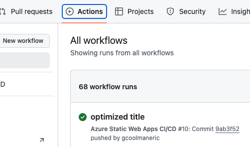 If it shows green light, it means you successfully set up CI/CD for Azure Static App.